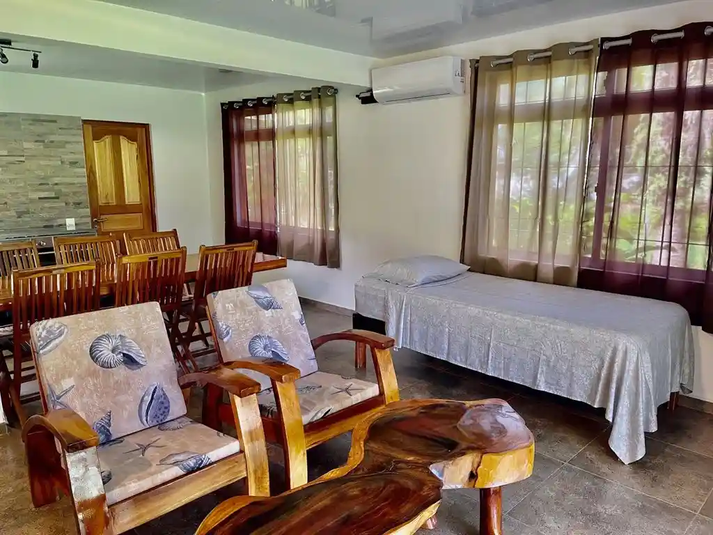 Profitez du charme insulaire et de l’intimité offerts par ce bien exceptionnel. Nichée sur un terrain arboré de 2500m², cette maison rénovée, meublée et climatisée est une véritable oasis de tranquillité.